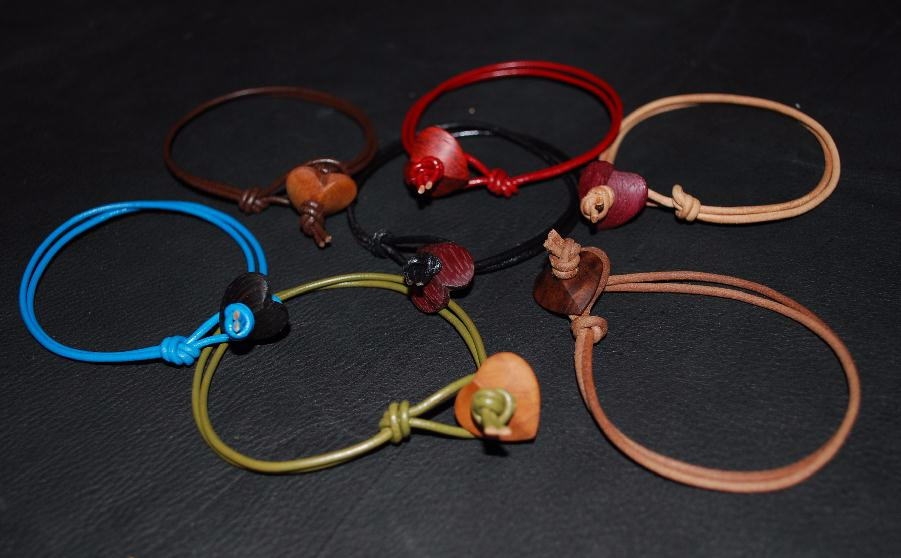 ハートをメインに革紐を繋げたブレスレットです。
