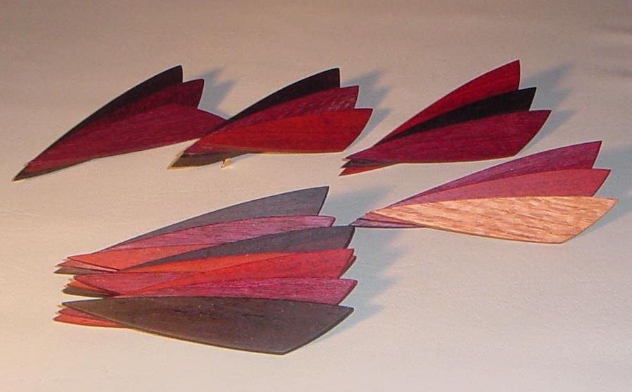基本形はインディアンローズウッド、ブラッドウッド、パープルハートですが他にメープルやホワイトオークなどの白系の木の組み合わせもきれいです。