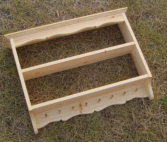 木目とデザインカットが美しい壁掛けの飾り棚です。