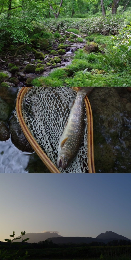 夕まずめの良い時間だったが魚の反応は鈍く毛鉤を換えここで終わりかなという流心のポイントで7寸の岩魚をヒット。