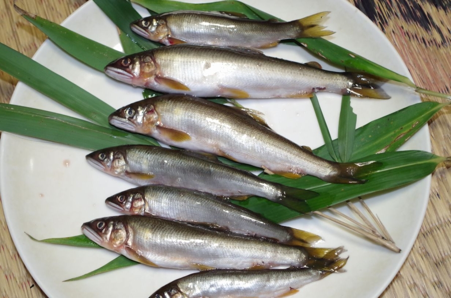 香茸、日野川天然鮎、40cmの白イカ。
