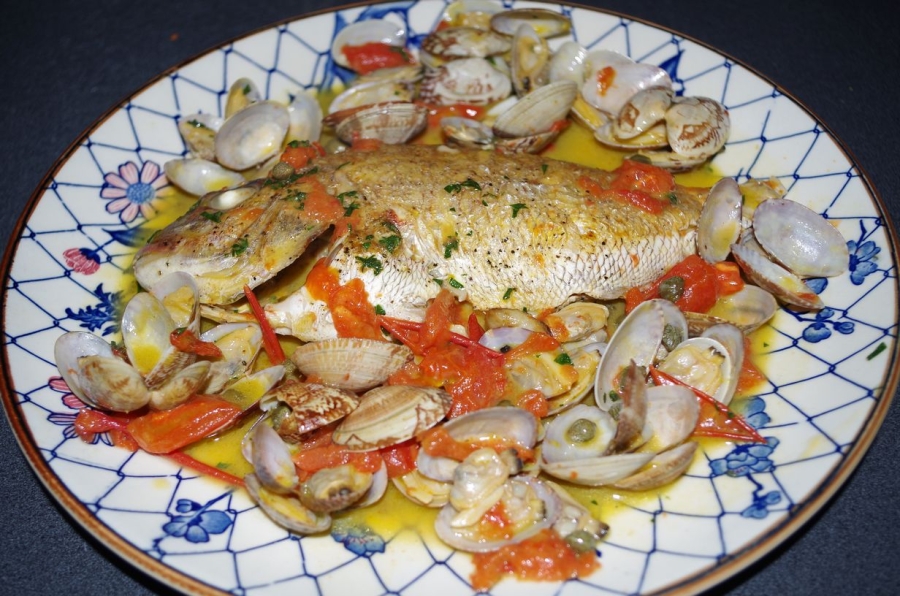 今日の夕餉のメインは「真鯛のアクアパッツア」