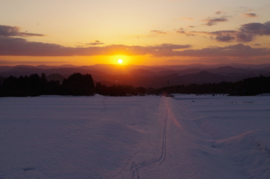 先週降った大雪は我家の周りも未だ40~50cmあり田んぼの脇道が絶好のフィールドに!