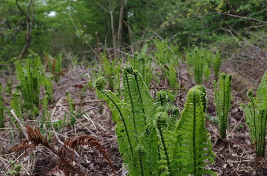 「コゴミ」 芽が出てくる様が人が前かがみに縮こまっているように見えることからというなまえがついたという正式名は「クサソテツ」という山菜。