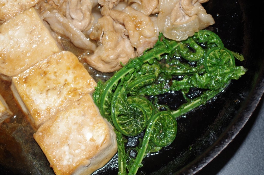 あく抜きのいらないあっさりとした美味しい山菜で、早速豚肉と豆腐の旨煮に加えてみました。
