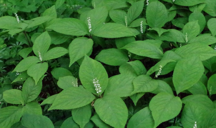 1科1属の珍しい種でカツラと類縁関係がある。 胸のつかえが降りた感じ! 「フタリシズカ」の群落もありました。