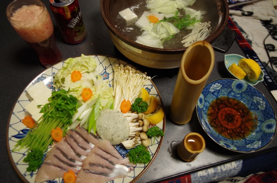 とても食べきれないので、3枚におろした後片身は冷凍、柵に分けて片身はたたきにして半分は山ジイに分けて、片方の半分は連れの食事会で使い、残りは今日の一人飯でしゃぶしゃぶでいただきました。
