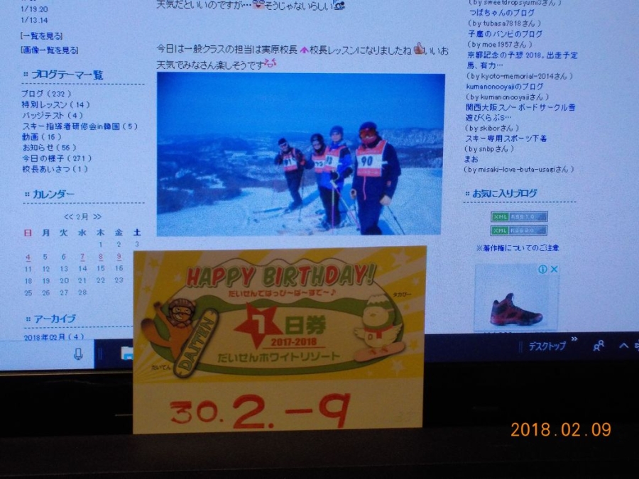 だいせんホワイトリゾートは「だいせんはっぴーばーすで~♪」で一日券が無料。
