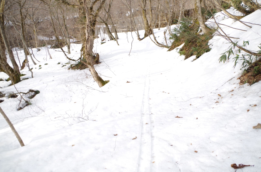 土曜日奥大山スキー場で滑り終えた後目の前の木谷沢に入った。 人の気配もなく、この時期の木谷沢は無彩色の世界で閑散としている。