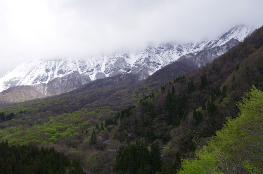 備後からの熟女の皆さま。 野草に詳しい方が多く、チャルメルソウ、芽吹いたばかりの矢車草やサイハイランなど次々と見つけていました。 1週間前からくらべると花の種類も増え、キケマン、ヤマエンゴサク、スミレサイシン、カンアオイ、ネコノメソウ、ワサビ,ムシカリなど見ることができました。 霰も降り7合から上は大山も雪化粧。 気温は6℃と寒い木谷沢でした。