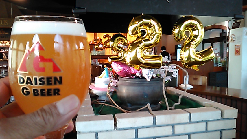 絶対外せないバイツェンとあてにオオマサリをオーダー。 限定ビールウィートエール、クランセゾン、しめに純米強力オーダーで1時間余りの22周年は終了。 夕焼けの中押しチャリで帰りました。