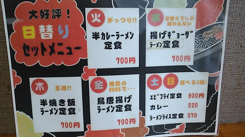 火曜日の半カレーラーメン定食がずっと前から気になっていて、今日訳有梨を買いに行った後寄り早速日替わりを注文。