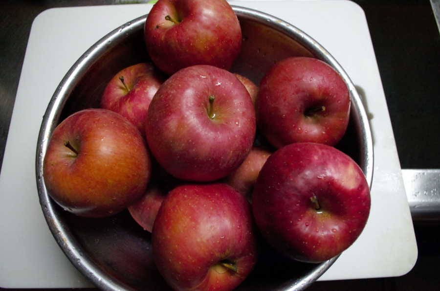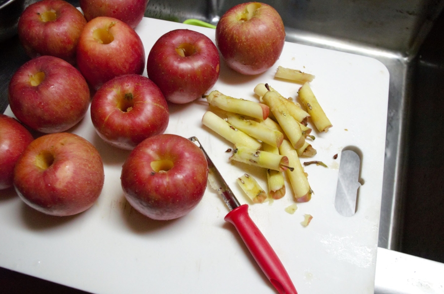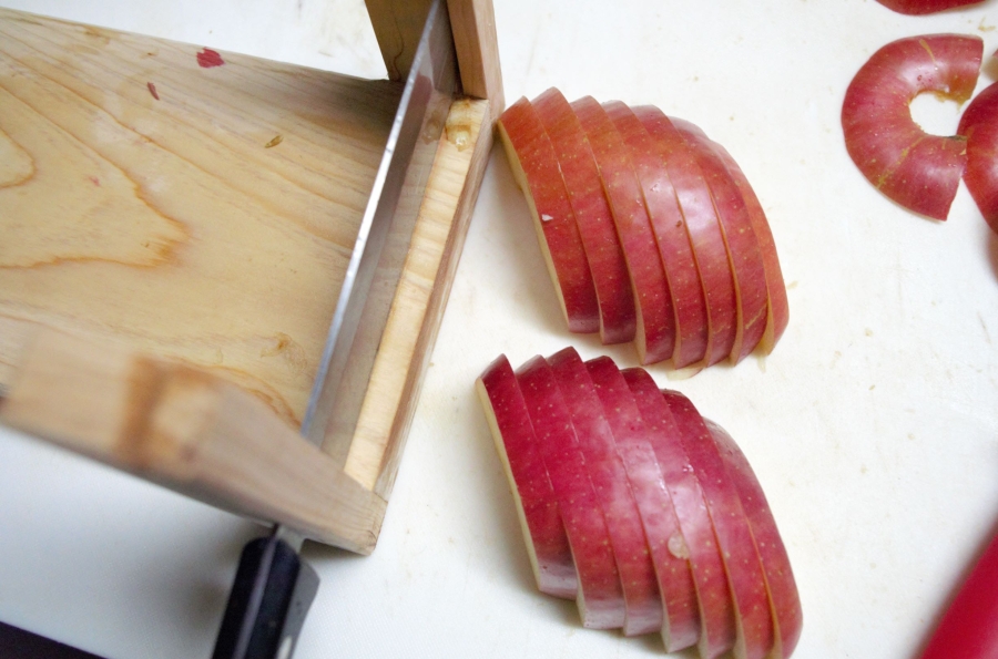 りんごの輪切りを正確な厚みに切るため、いろいろと検討した結果治具を作りました。