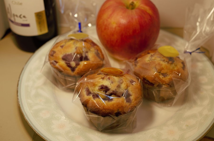 りんごは赤ワインとラム酒で食感が残る程度に煮詰めました。