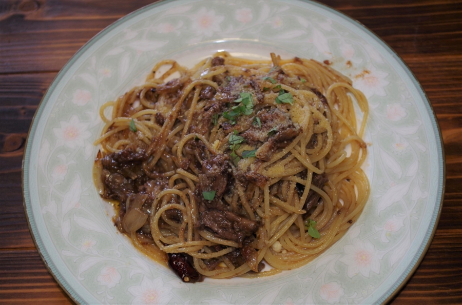 最近のランチパスタです! グーラッシェパスタ 皆が集まった時多めに作って冷凍していたグーラッシェ(牛肉の赤ワイン煮込み)を絡めてパルメザンチーズをたっぷり! きのこパスタ 冷蔵庫にあったエノキだけと椎茸を和風出汁と醤油で味付け。