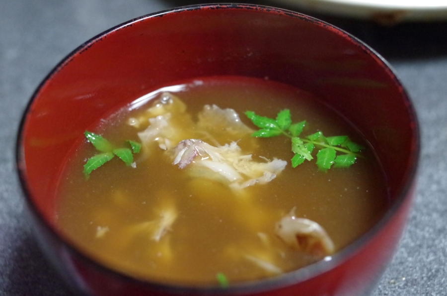 そして夜は「かぶと煮」と残ったあらと煮汁に熱いお湯を注いで「お汁」