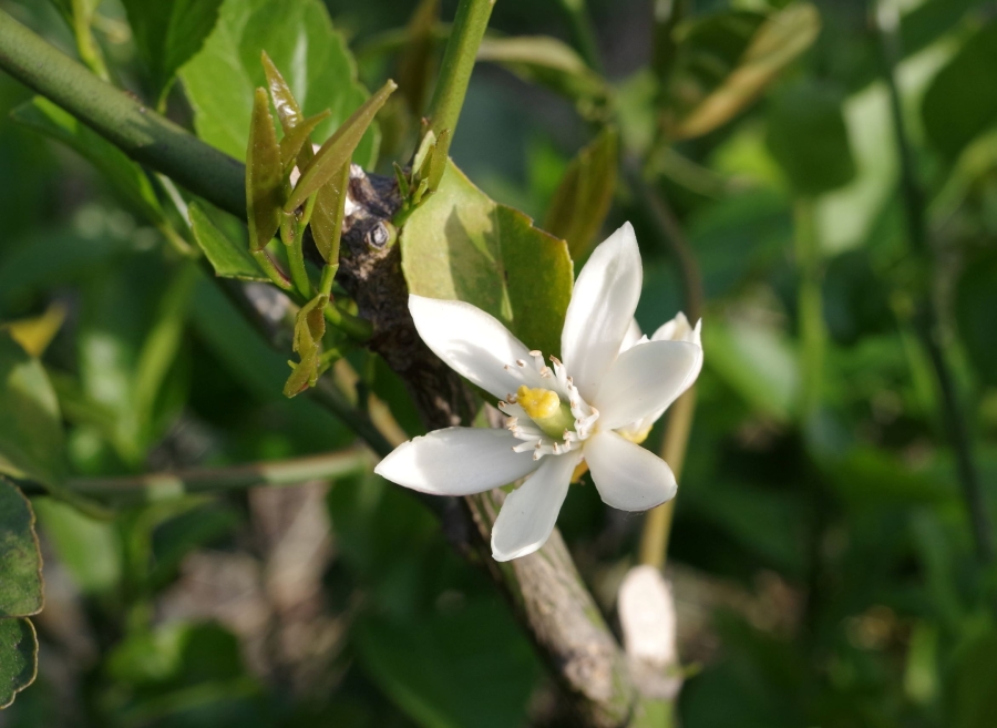 檸檬は寒さに弱いので、我が家辺りの標高では路地植えは厳しいものがあり冬の養生は大変で木も大きくなりませんが、春になるといつものように芽吹き花をつけ立派な実がなります。