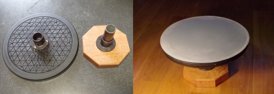 その度回転台が欲しいと思いながら、回転部分のパーツの作り方が浮かばず何年もペンディングになっていましたが、ダイソーで程よい回転台(¥150)が見つかったのでやっと製作しました。