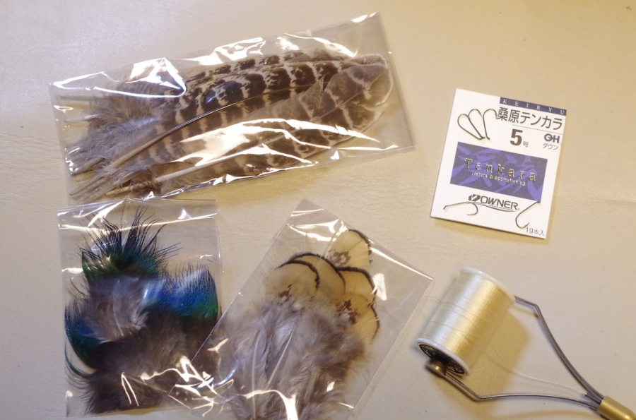 手持ちのヤマドリのハックルが底をつき困っていたが、webで不本意ながら大陸性のヤマドリと、キジ、それにブルーっぽいハックルが入手できたので久々に毛鉤を巻いた。