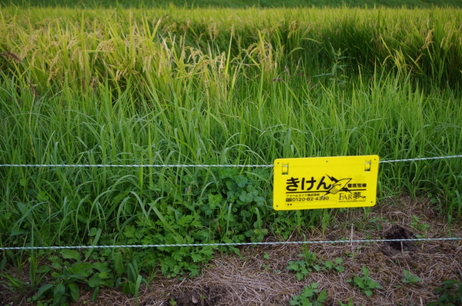 一瞬何がおこったか分からなかったが、田んぼの鹿威しの線にロッドが触れたみたい。