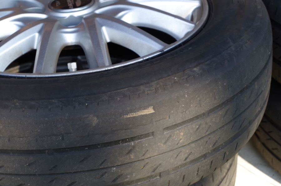 左の前輪タイヤが摩耗し、一部ワイヤーが見えてきました。
