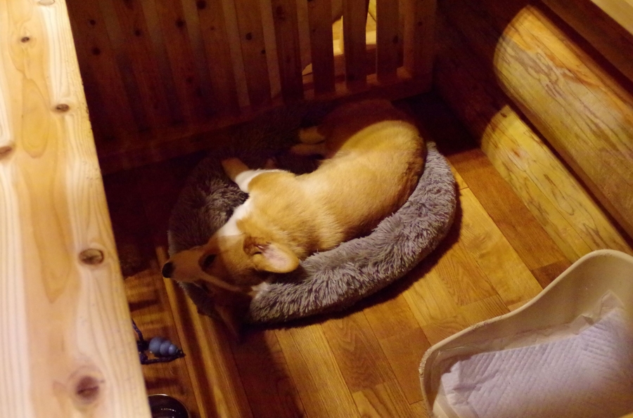 最初は落ち着かないようで嗅ぎまわっていましたが、時間が経つと居心地よさそうにしています。