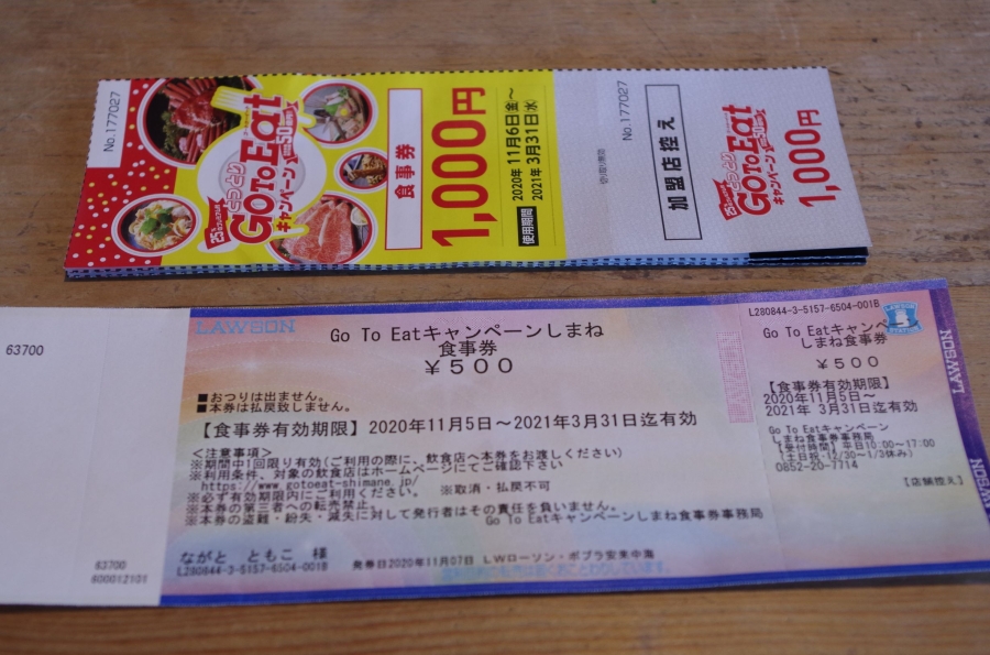 島根は購入金額¥4000で¥500×10枚の食事券。