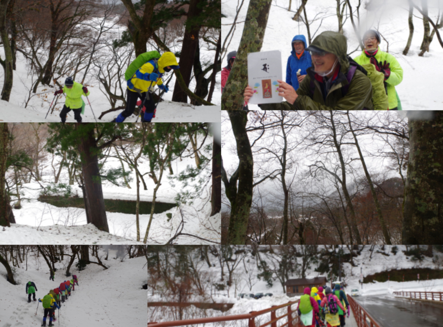 今日は雨の中自然公園財団主催の《幻の御旅所?から絶景を見るスノーシューツアー》に参加しました。