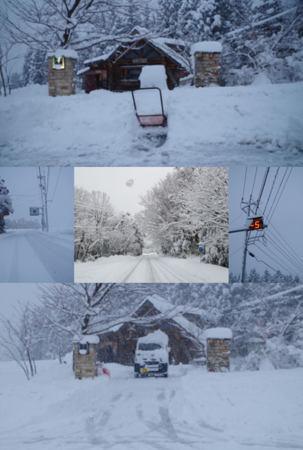 気温はー5℃なのにアスファルトの上はシャーベット状でとても重たい雪。