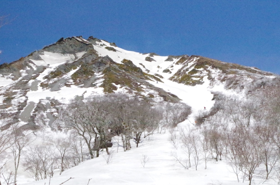 雪は締まっていましたが標高が上がると頭上から霧氷の解けた水滴が雨のよう。