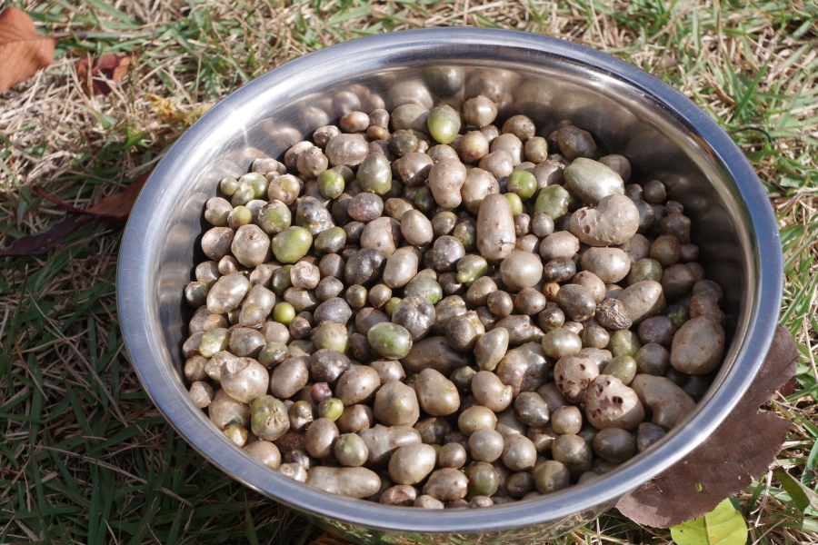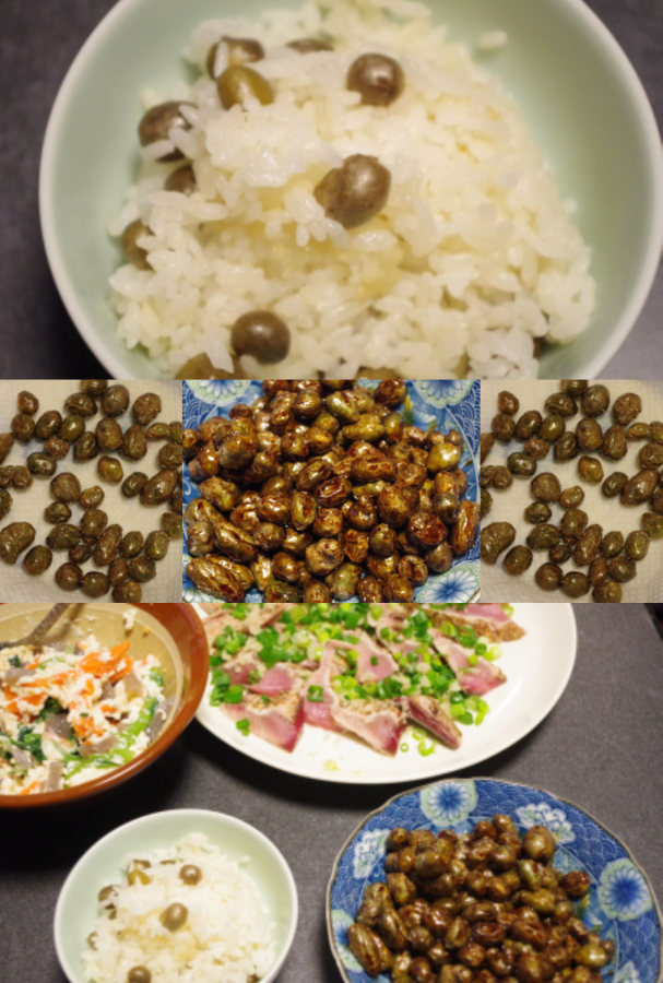 むかごご飯は王道ですが、知人から教えてもらった油でいためたのち、一つは塩味二つ目は砂糖みりん醬油味を調理しました。