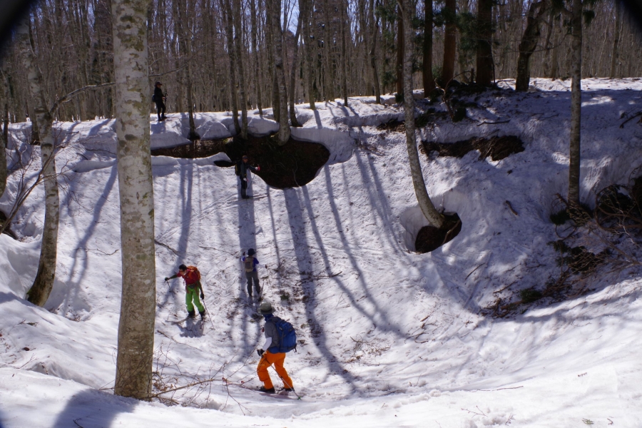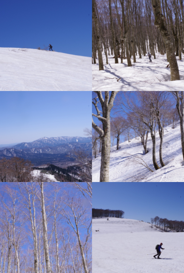 大山はもう滑走できるような雪はありませんが、扇ノ山は1310mの標高ながら上山高原(946m)からしっかり雪があり驚きとともに、連休あたりまで楽しめそうです。