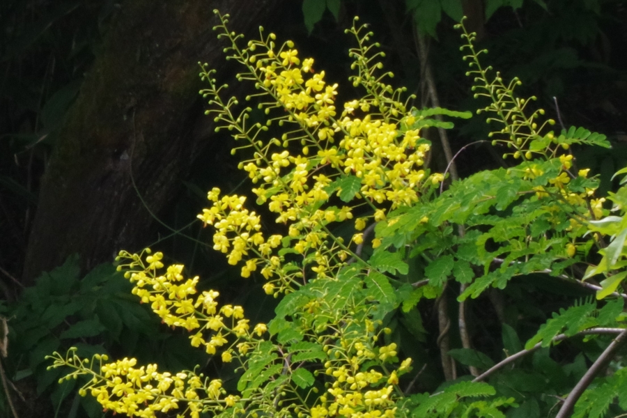 昼時食堂に行く道脇の小さな谷間に穂立ちの黄色い花。
