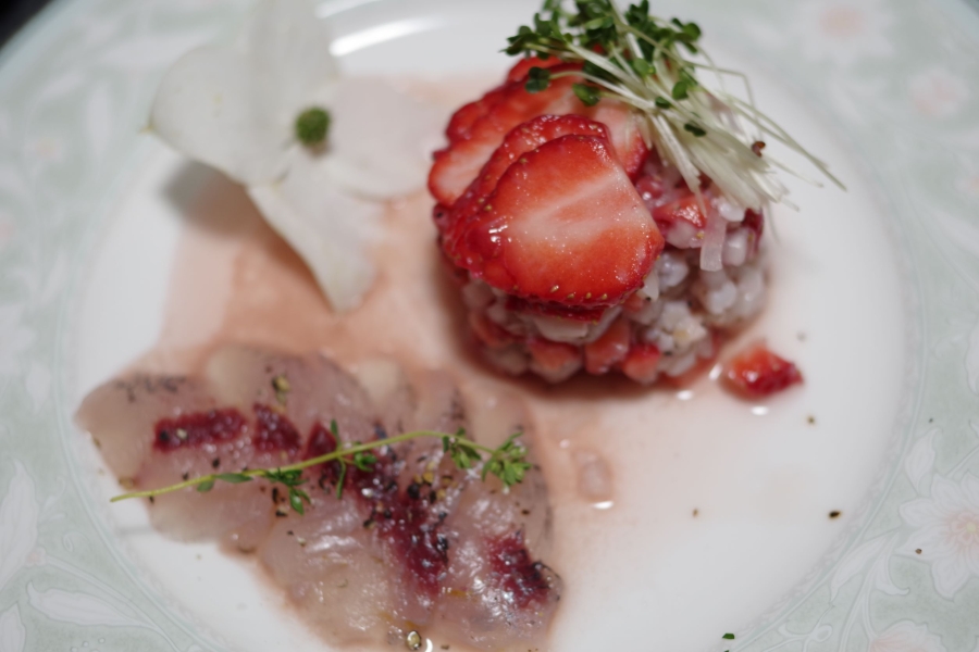 ・エビとイチゴのタルタル&トビウオのカルパッチョ