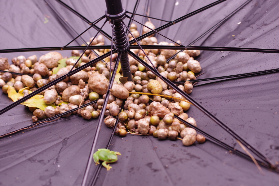 傘開いて採取に行きました。