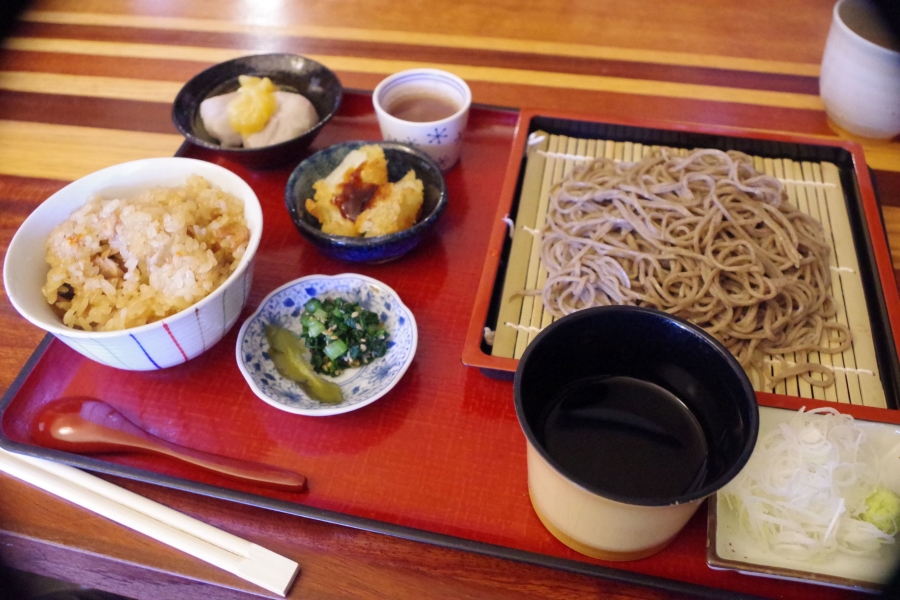ぼくはおこわセットの冷たいそば。 純米八郷冷で行きたかったけど午前中なので自嘲。 二人は温かいそば。 茅葺の古民家をリノベーションしたお店で雰囲気も良くまわりのロケーションものんびりとした良いところです。