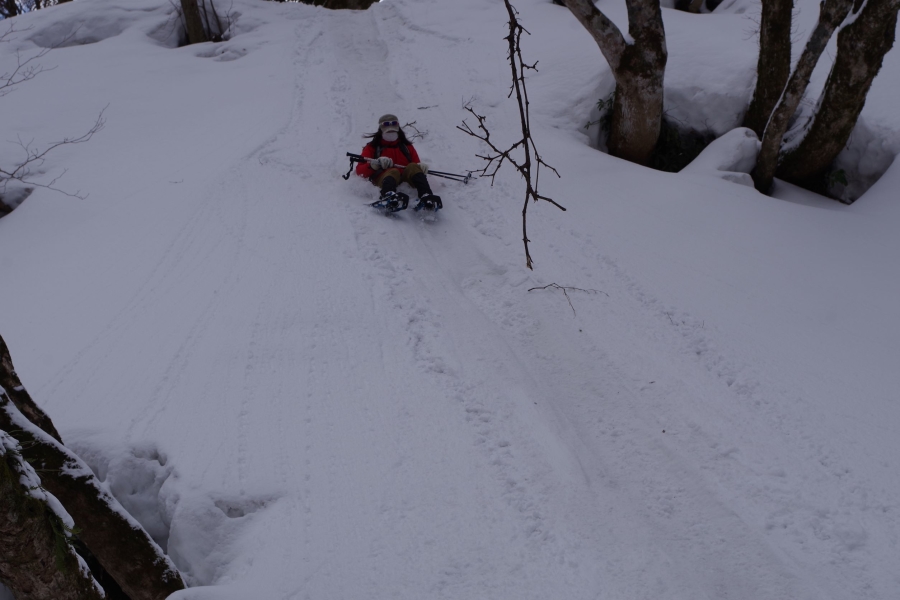 雪のフィールドの移動アイテムとしての能力の高さを実感し、下りを楽しむ実践テクニックもスピード感満載ででスノーシューについての見識が大きく変わりました。