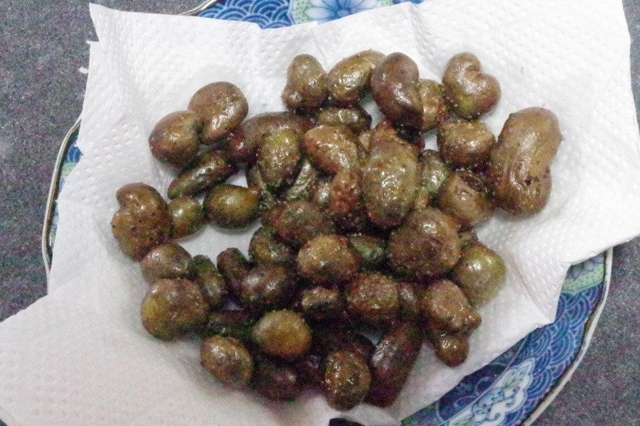傘を開いて長い棒で上の方をガサガサするだけの労力の少ない採取ながら、栄養価満点で美味しい最高の自然の恵み。