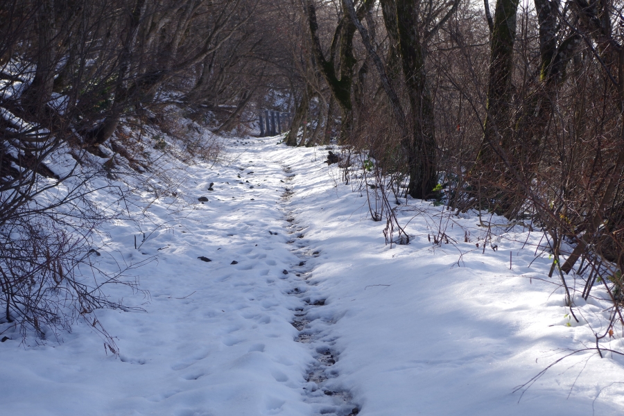 桝水のゲートには全く雪無し、なので横手道の横手別れに移動。