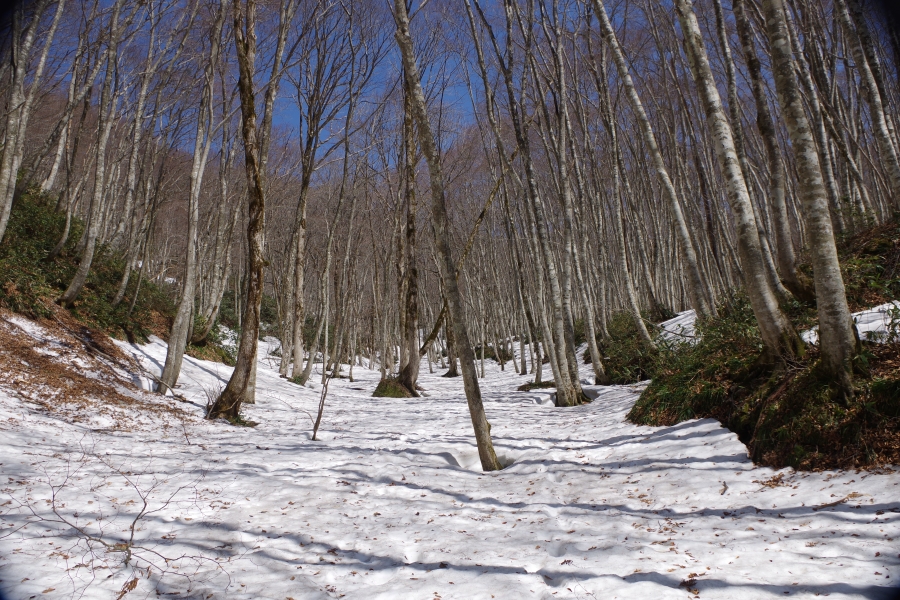 未だ芽は固く芽鱗が雪の上に落ちていないので雪は綺麗で滑走に問題のないコンディションでした。