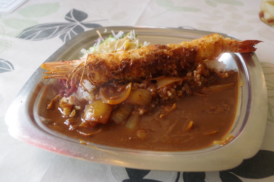帰りは少し遠回りし根雨のもりでエビフライカレー(¥1000)をいただきほっと一息。手作りラッキョウが容器で出てきました!