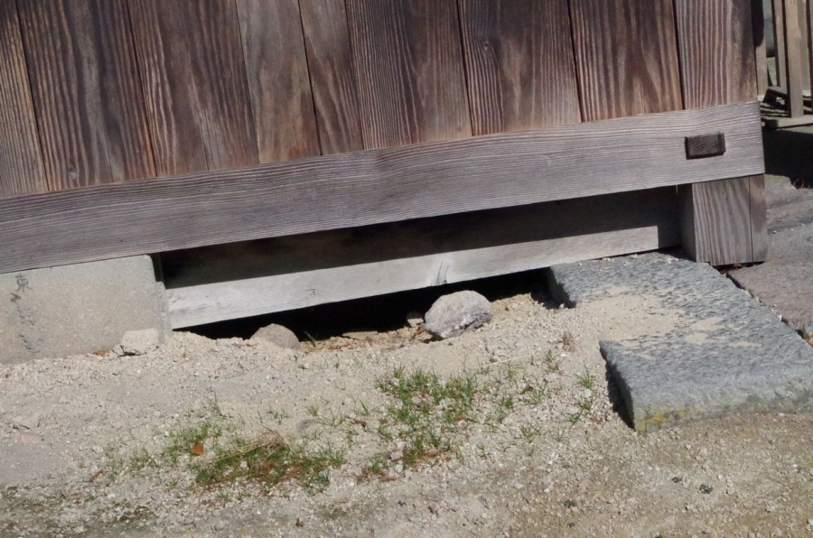 大神山神社奥宮 本殿のお稲荷さんに人為的開けられたキツネの通り道