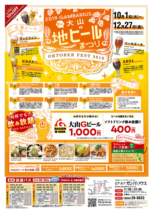 「2019 ガンバリウス 秋の大山地ビールまつり」始まりました。