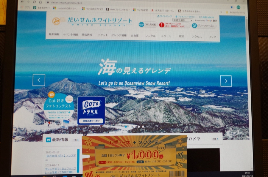 今日はだいせんホワイトリゾートがメンズデーだったので行ってきました。
